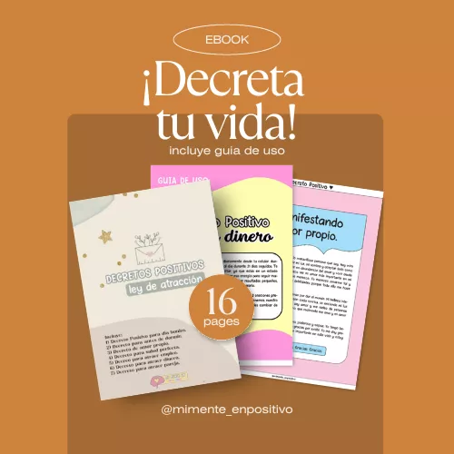 un ebook de DECRETOS POSITIVOS y otro de AFIRMACIONES POSITIVAS, los cuales son perfectos para tu proceso conmigo!